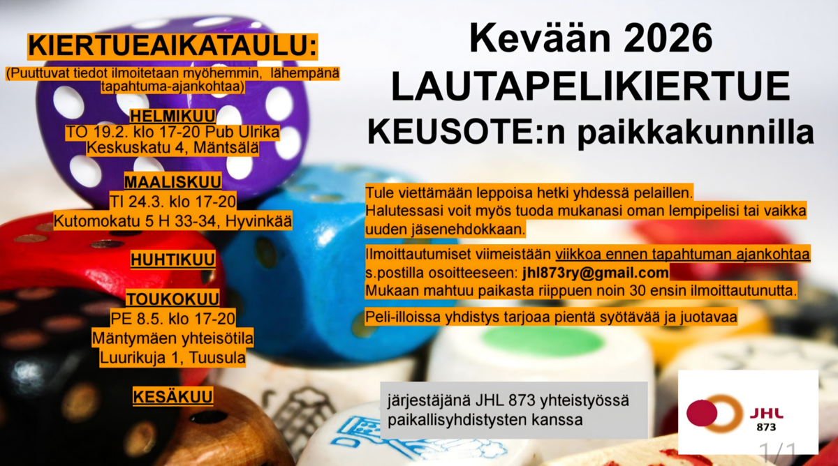 Keski-Uudenmaan alueen JHL-paikallisyhdistykset ovat yhteistyössä käynnistäneet lautapelikiertueen!