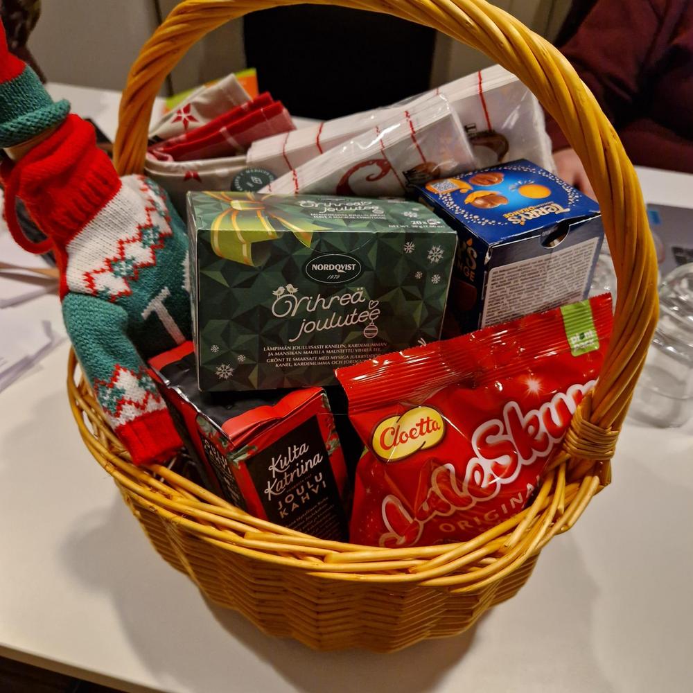 Tarjoilu oli jälleen kerran ihan ensiluokkaisen maukasta! Arpajaisvoittoja riitti lähes koko kokousporukalle, sekä jakotavarana oli kalentereita ja kangaskasseja.